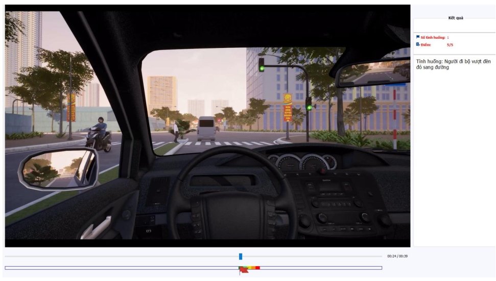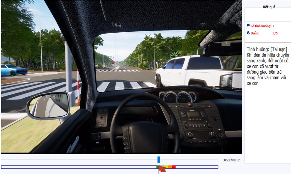 Nhấn phím Space – Khi thấy xe ô tô con màu trắng vừa chạm phần đường người đi bộ
