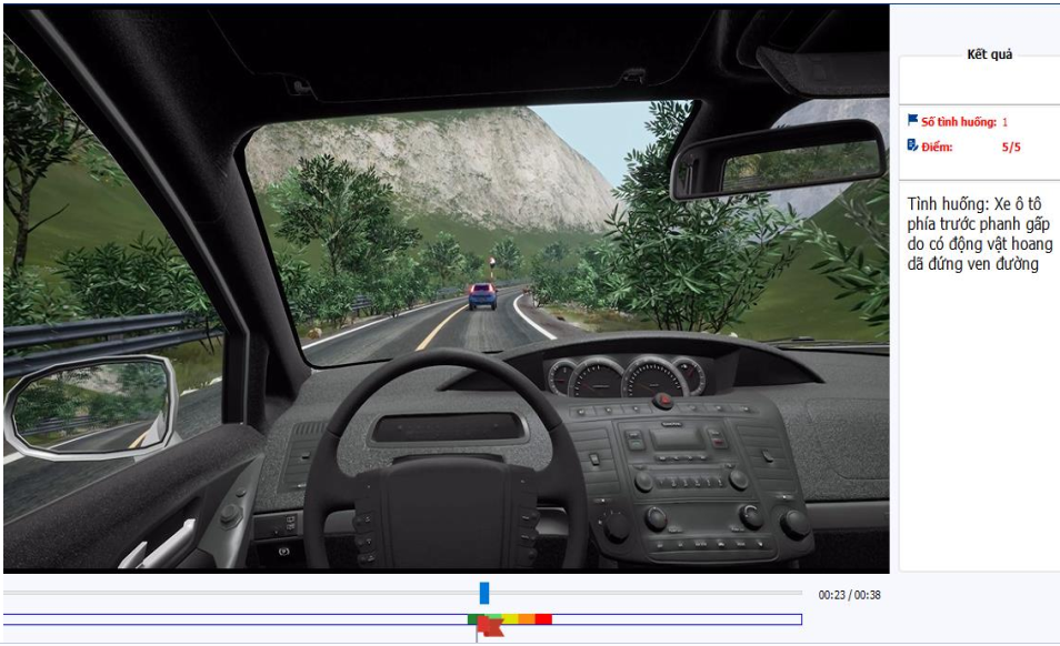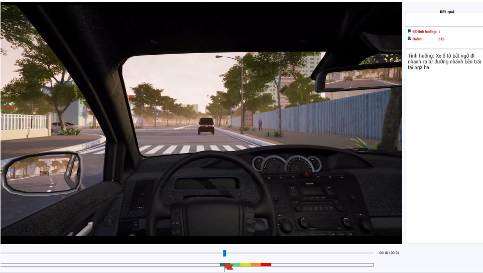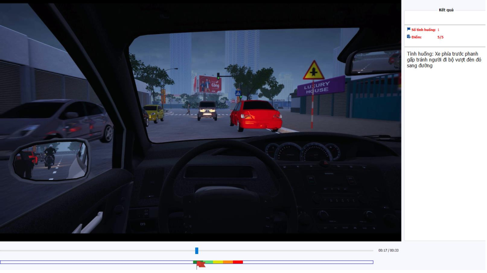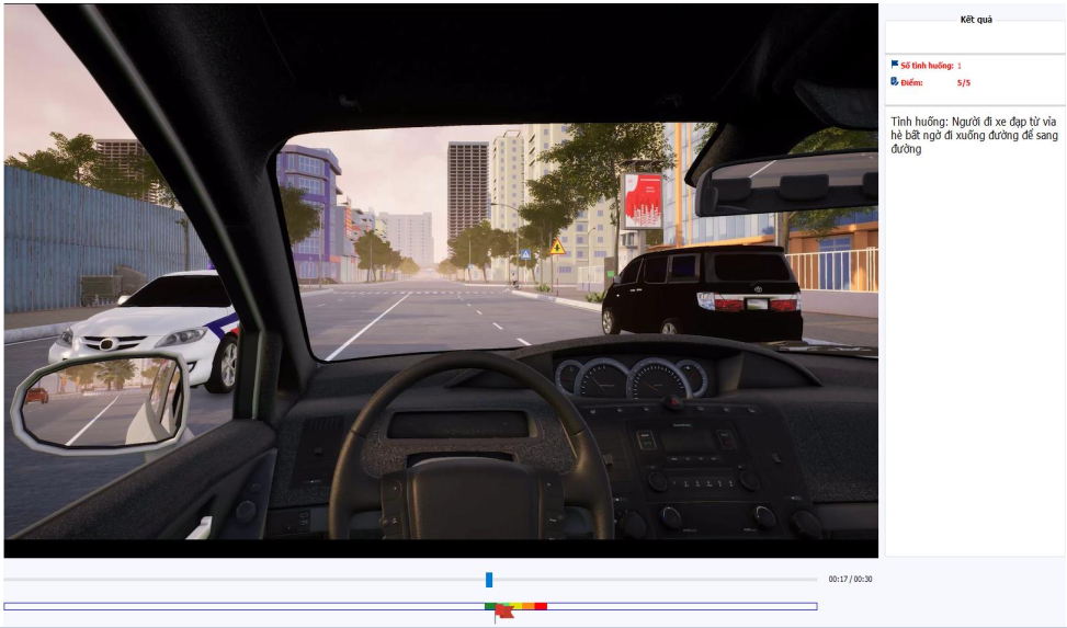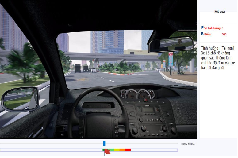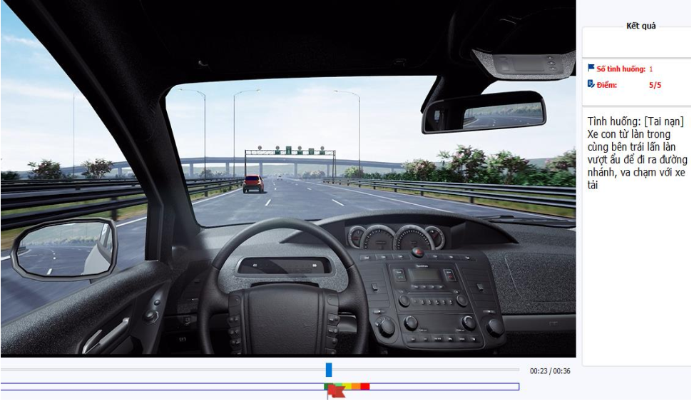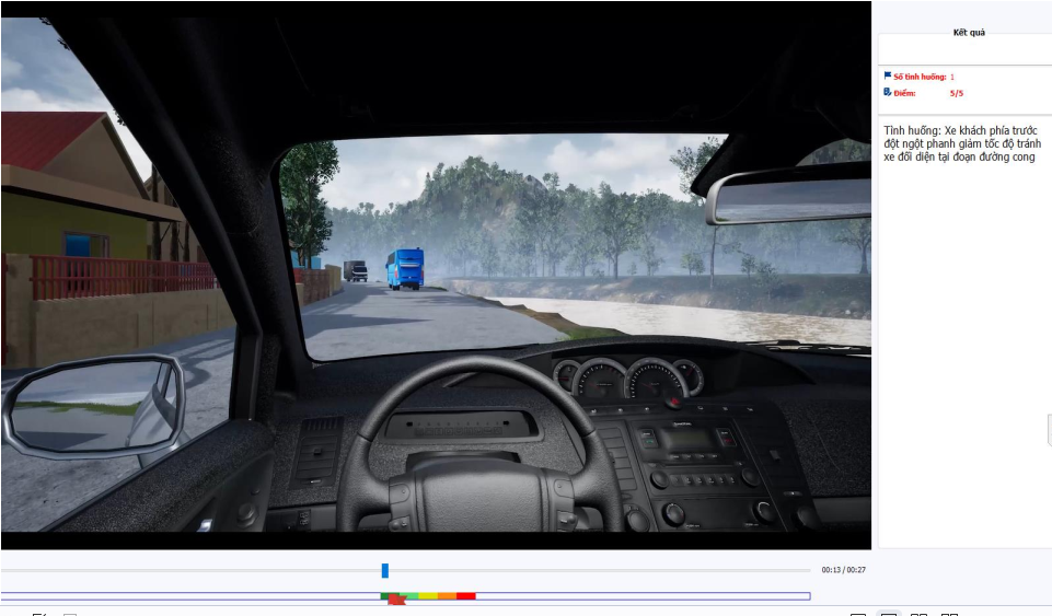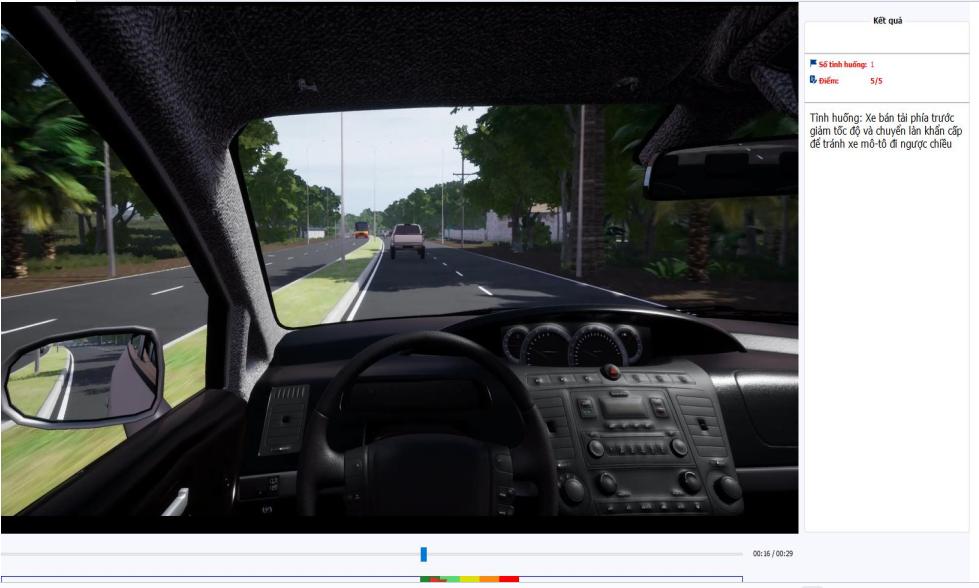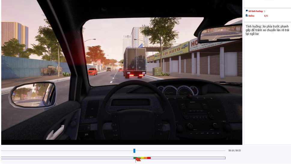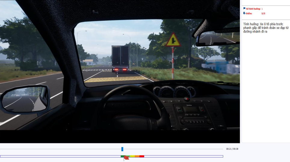 Nhấn phím Space – Khi ô tô con đến vị trí biển báo hiệu nguy hiểm