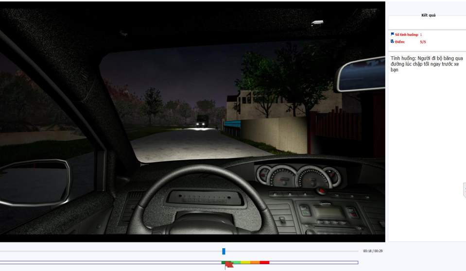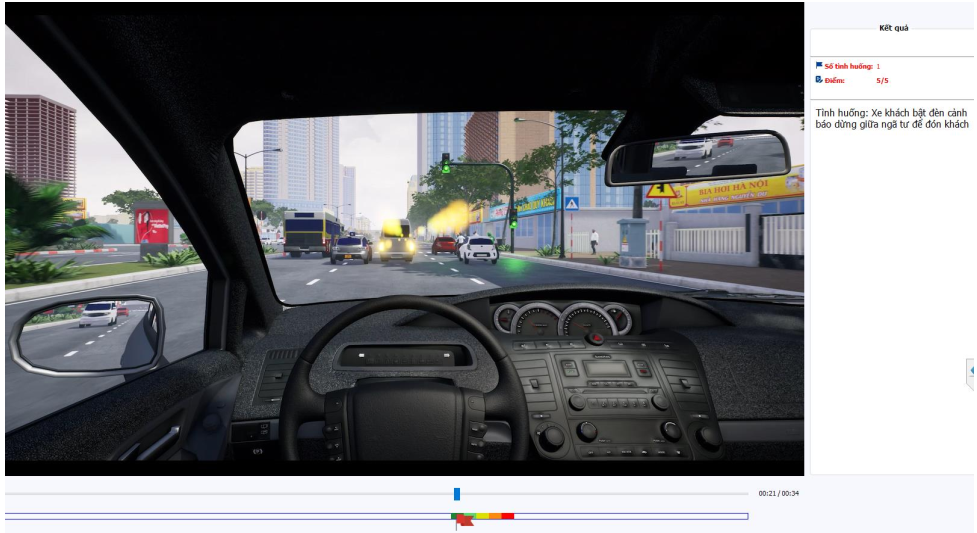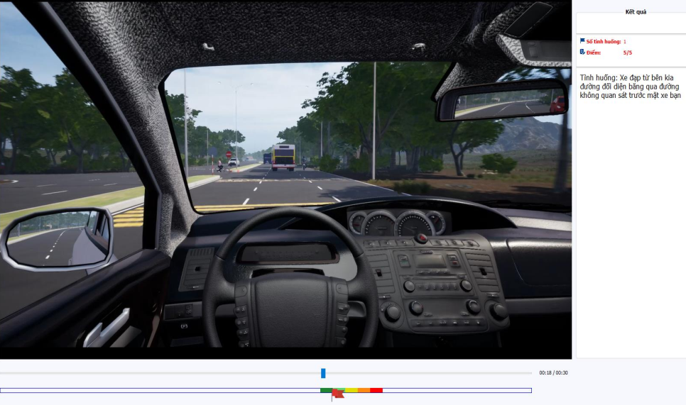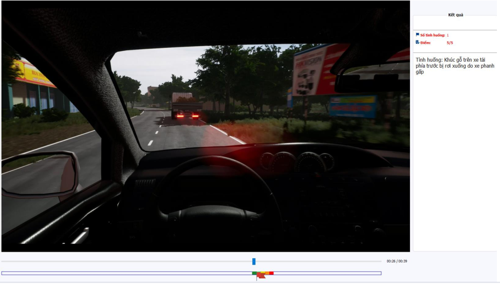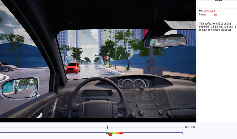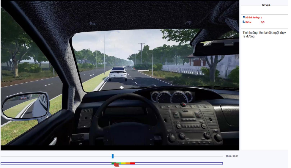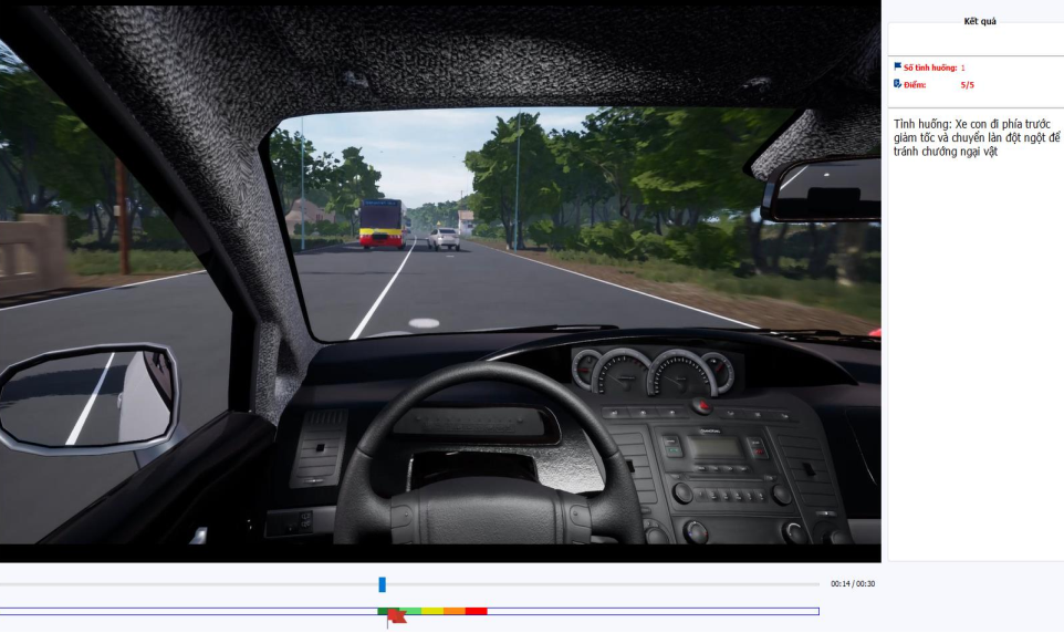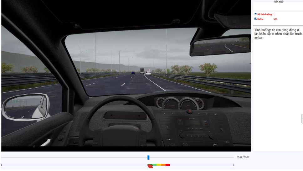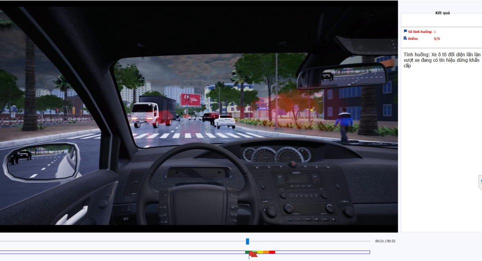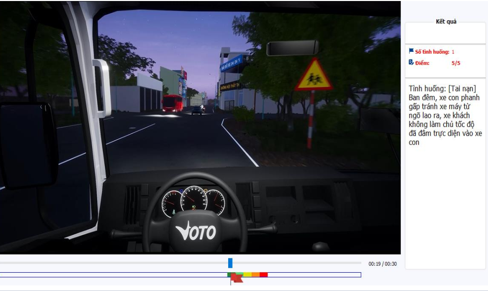 Nhấn phím Space – Khi ô tô con đến vị trí biển báo hiệu nguy hiểm
