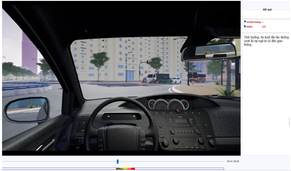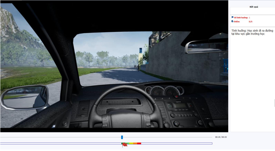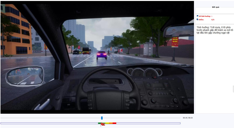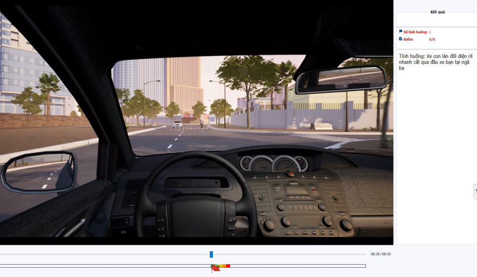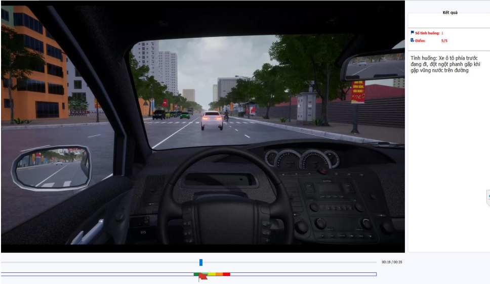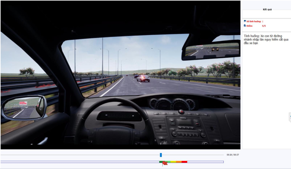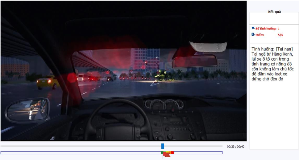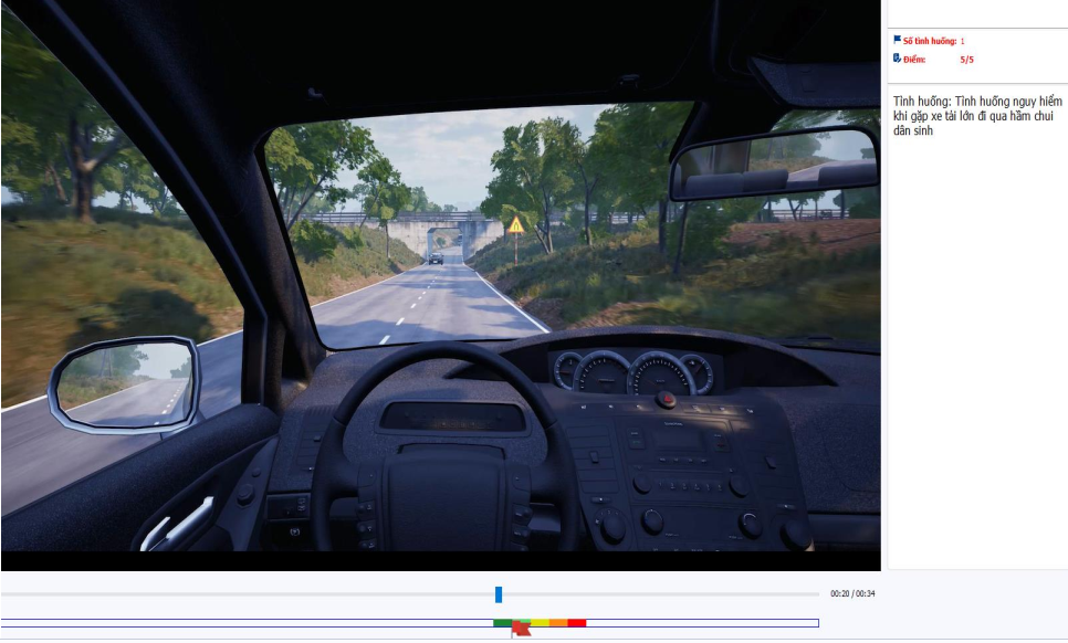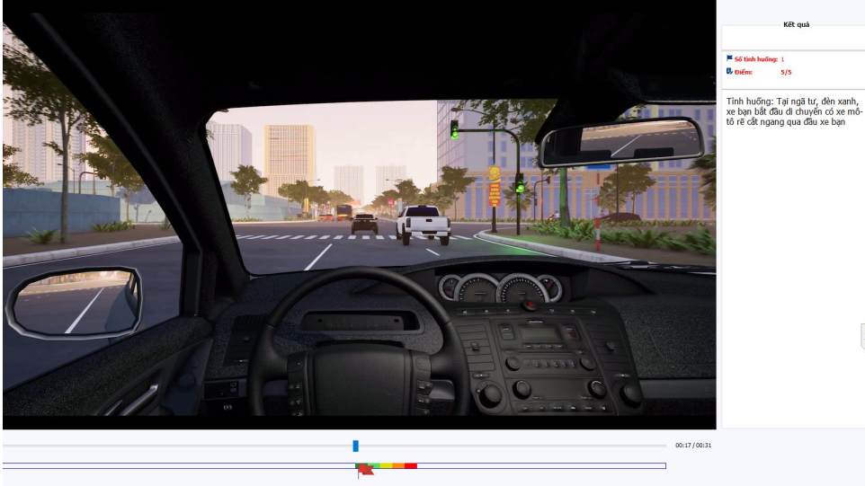 Nhấn phím Space – Khi ô tô con đến vị trí biển báo hiệu nguy hiểm