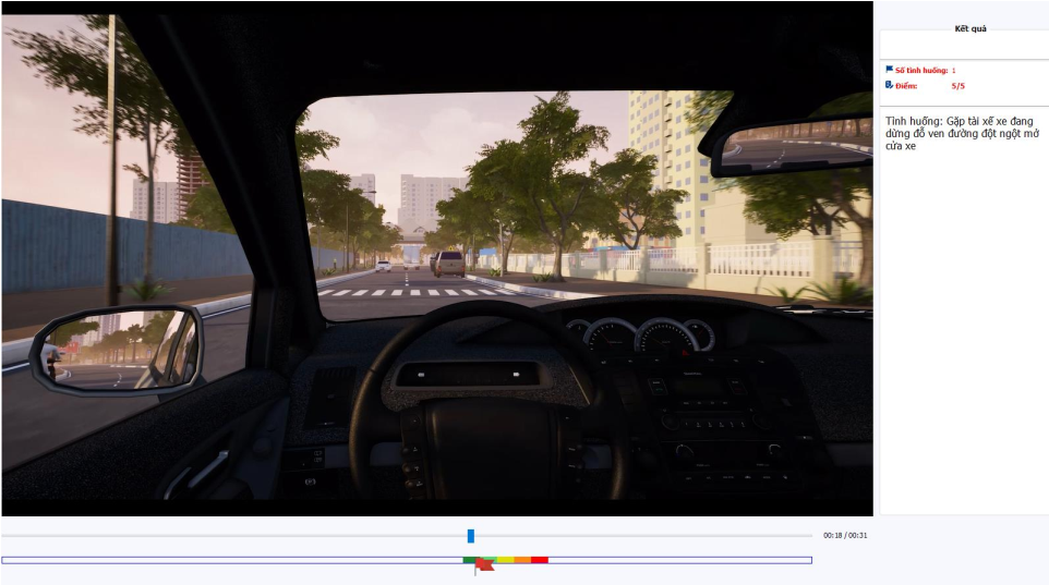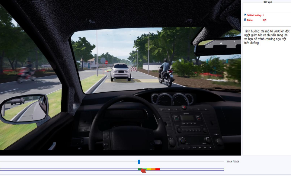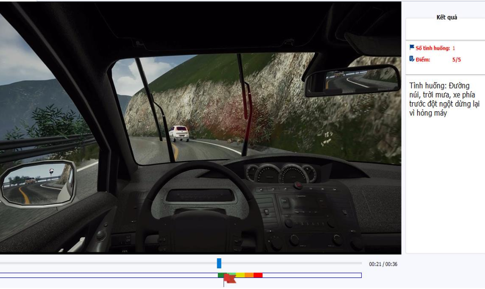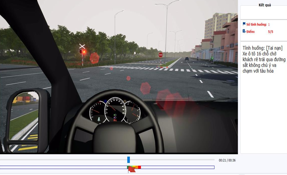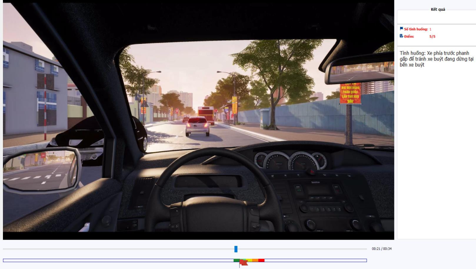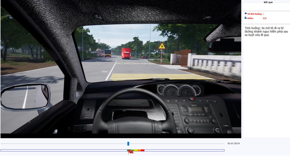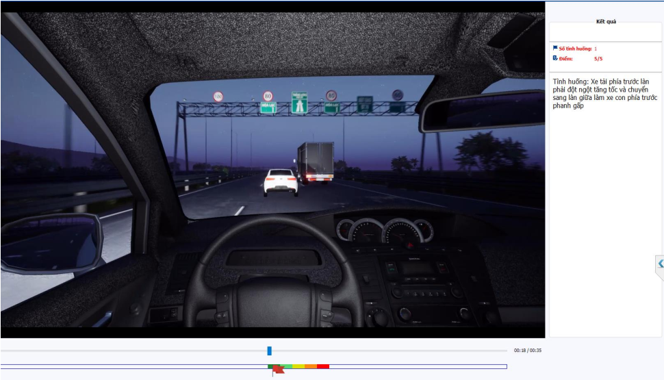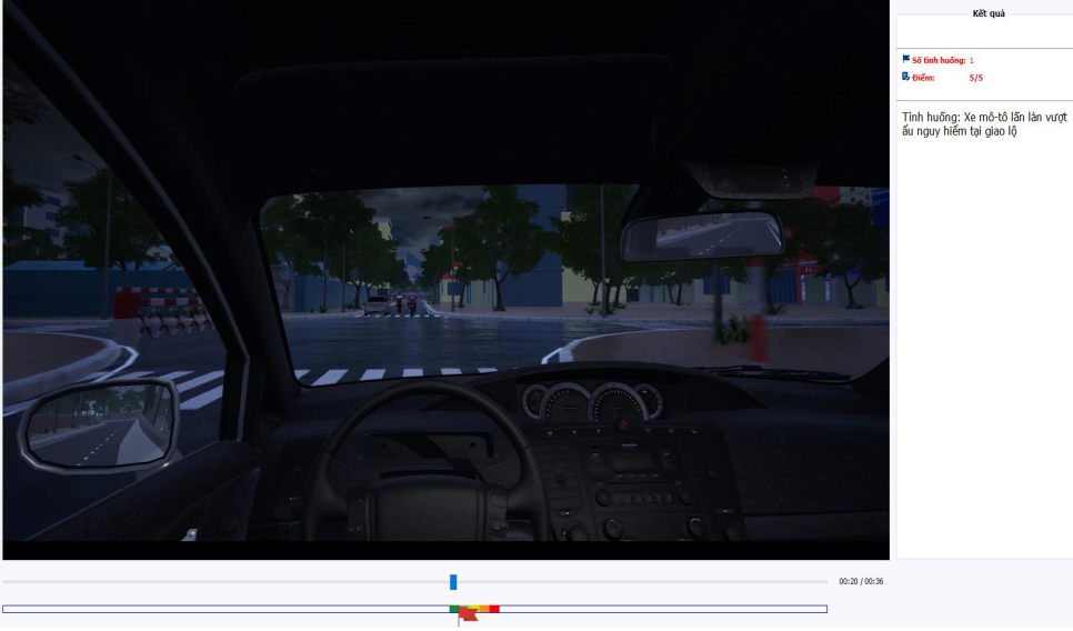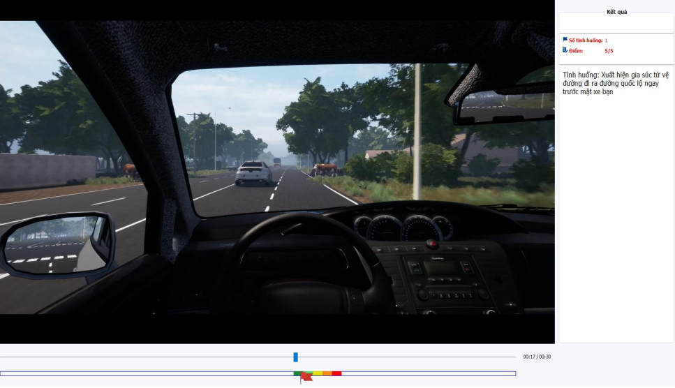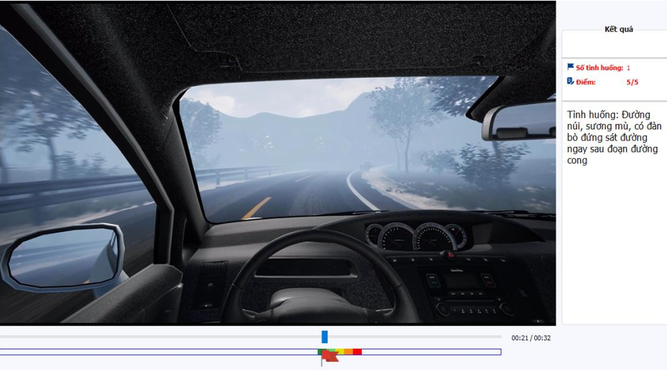 Nhấn phím Space – Khi ô tô con đến vị trí biển báo hiệu nguy hiểm