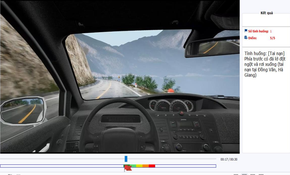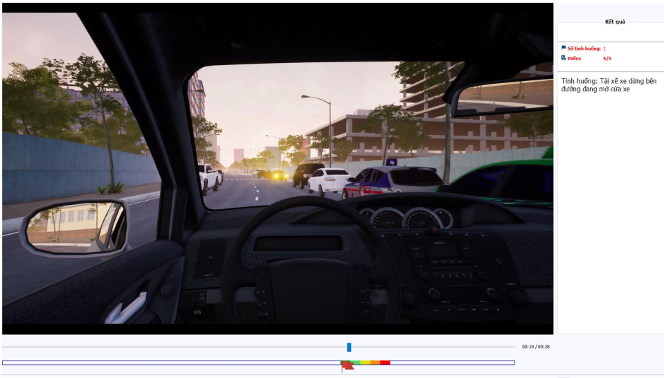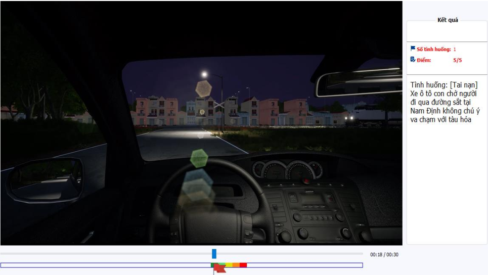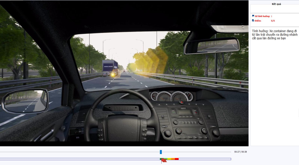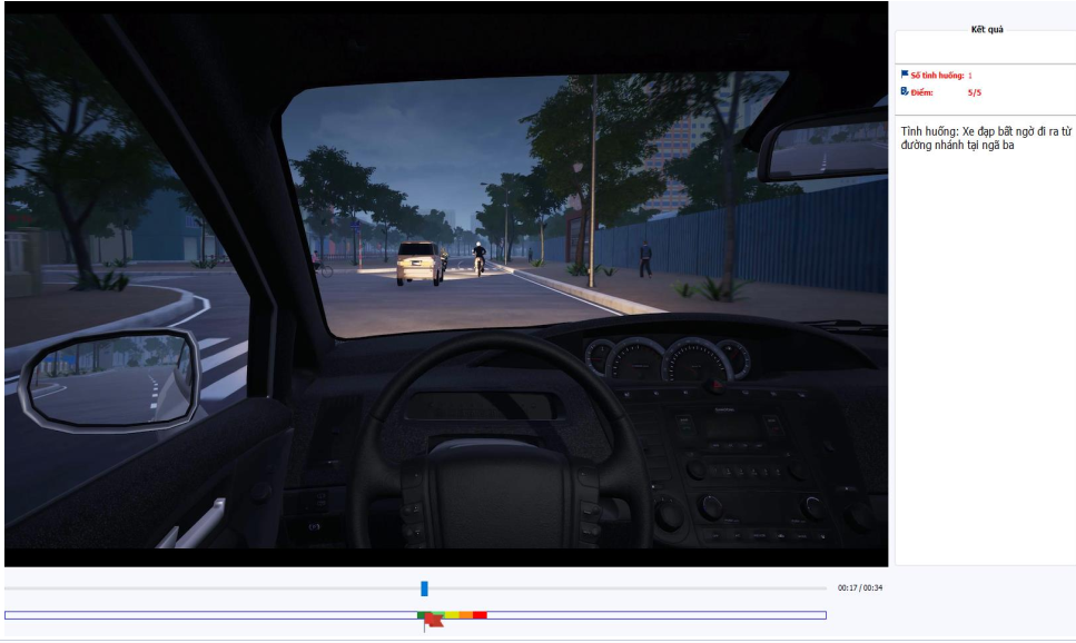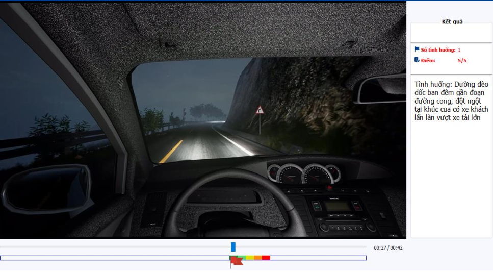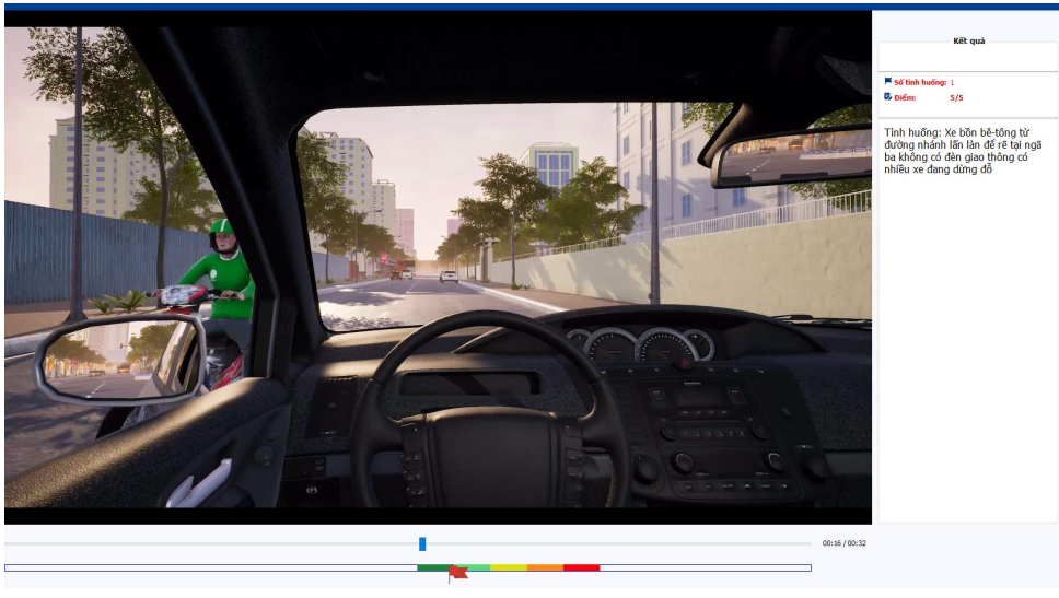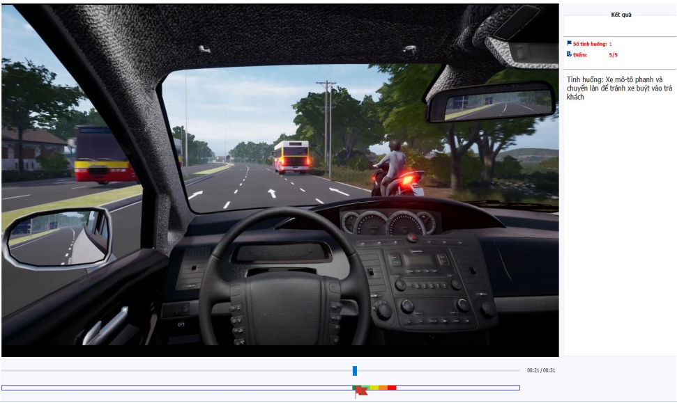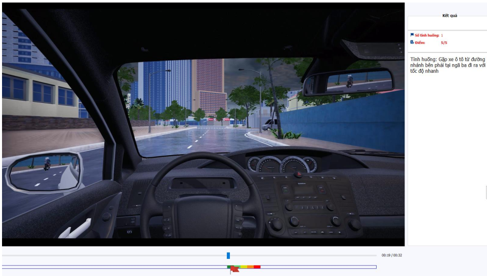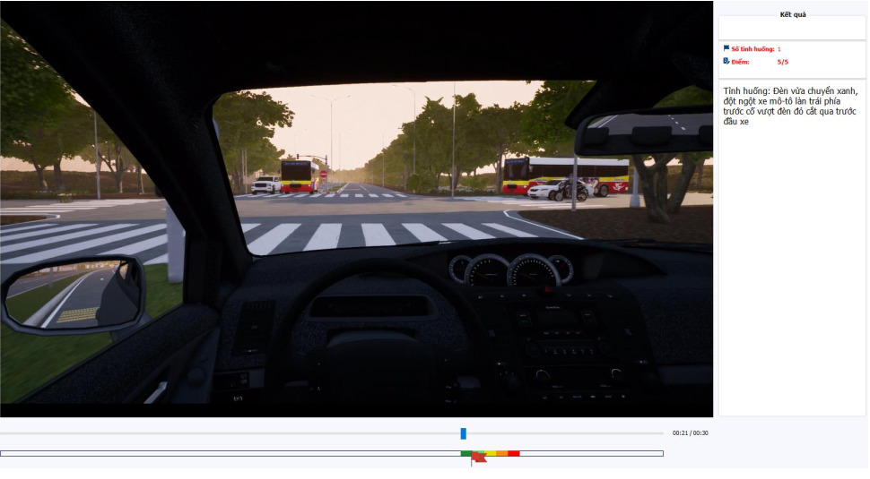 Nhấn phím Space – Khi ô tô con đến vị trí biển báo hiệu nguy hiểm