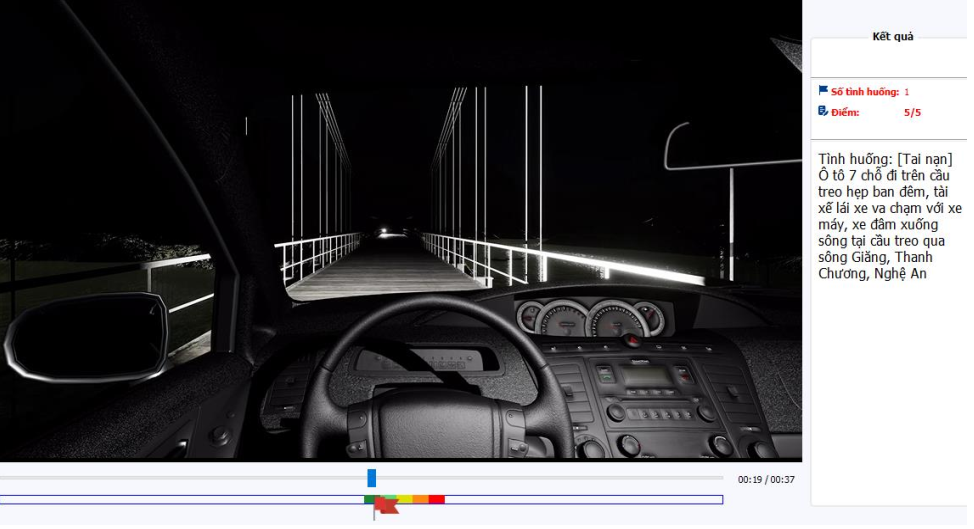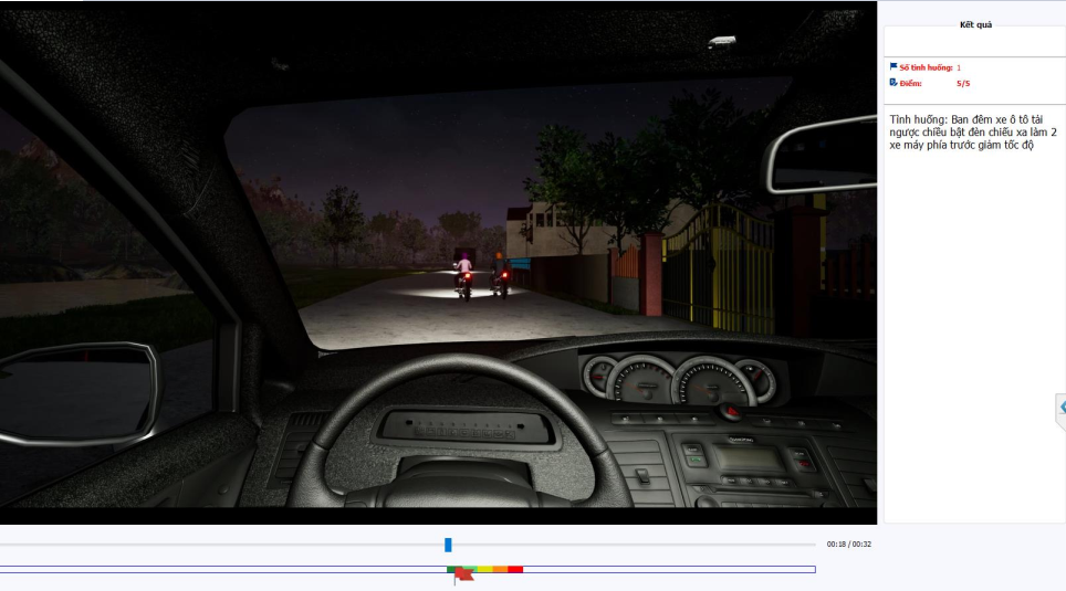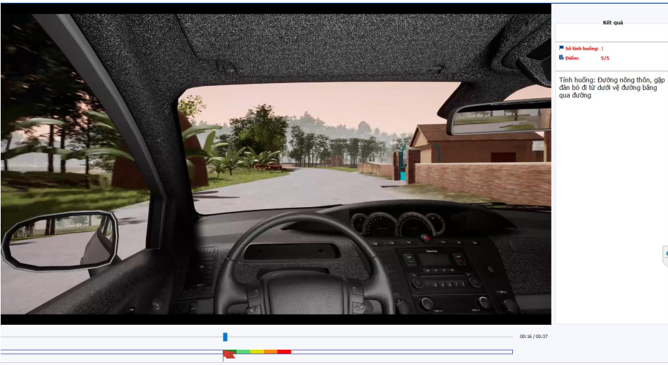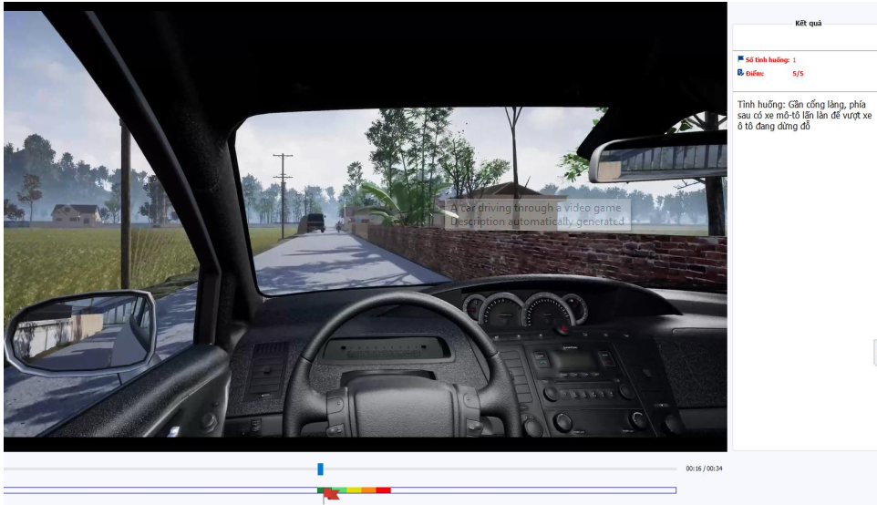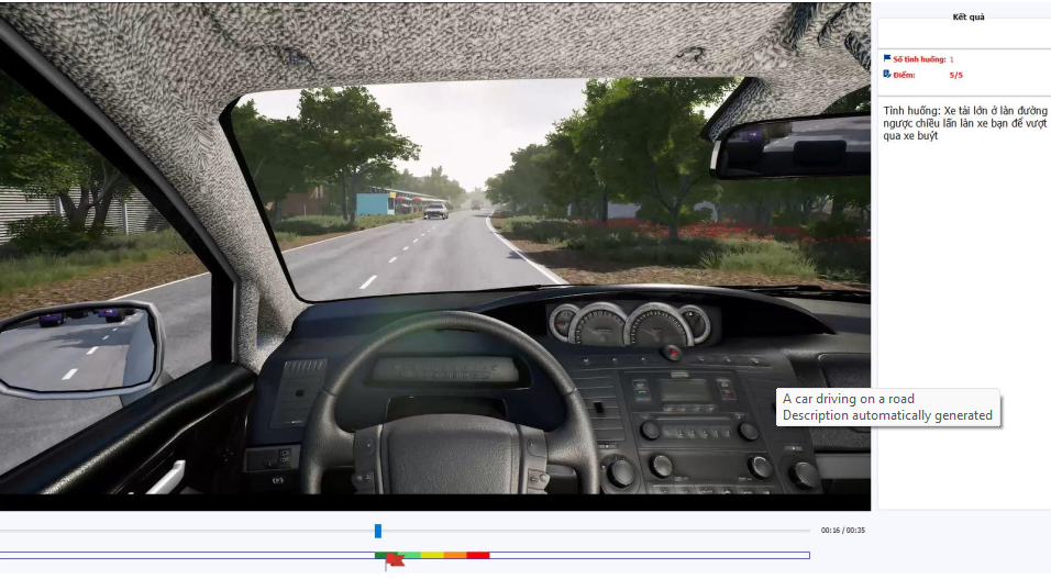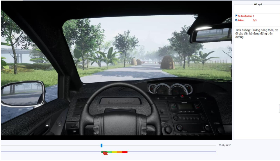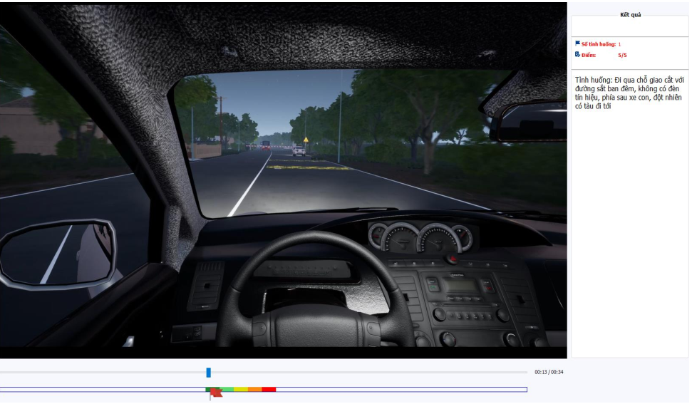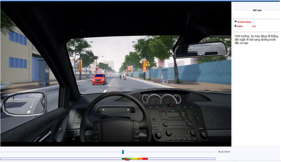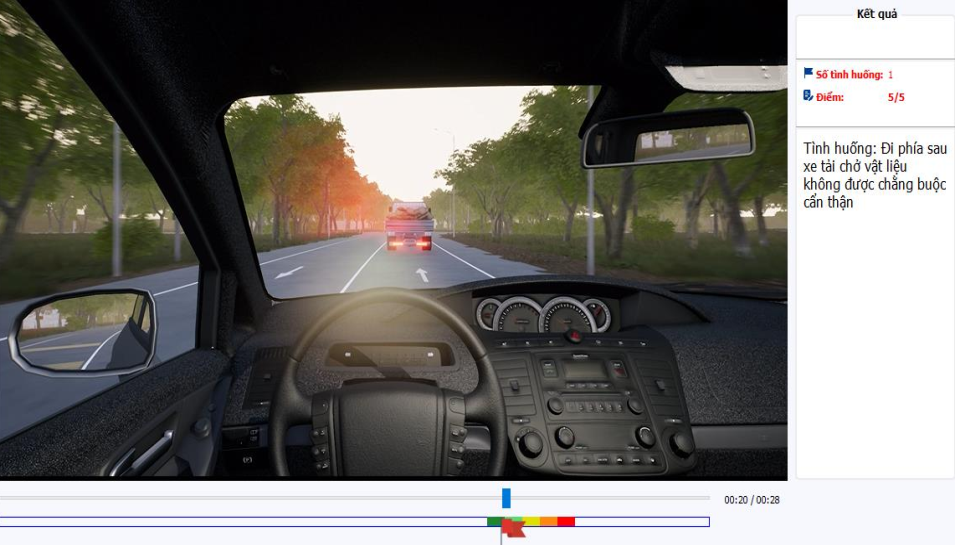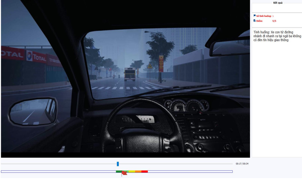 Nhấn phím Space – Khi ô tô con đến vị trí biển báo hiệu nguy hiểm