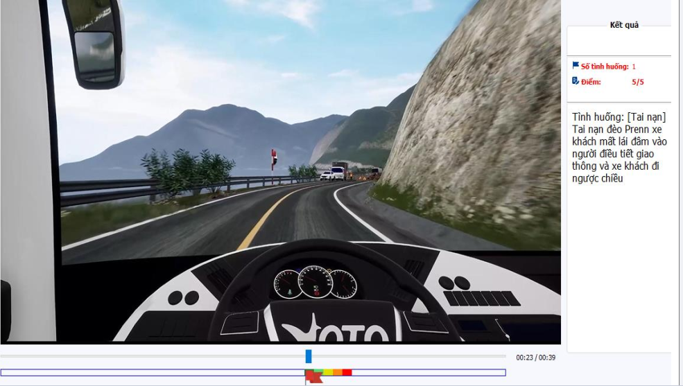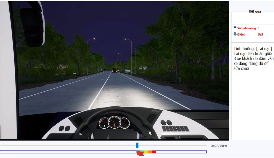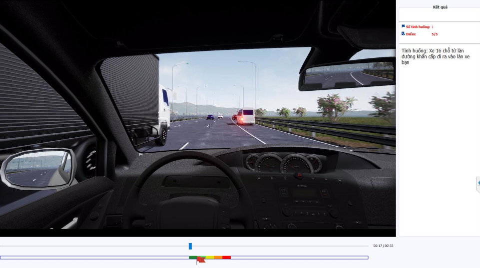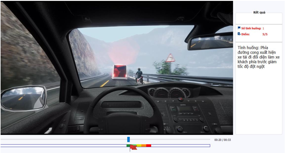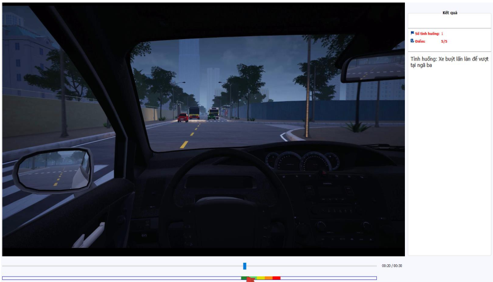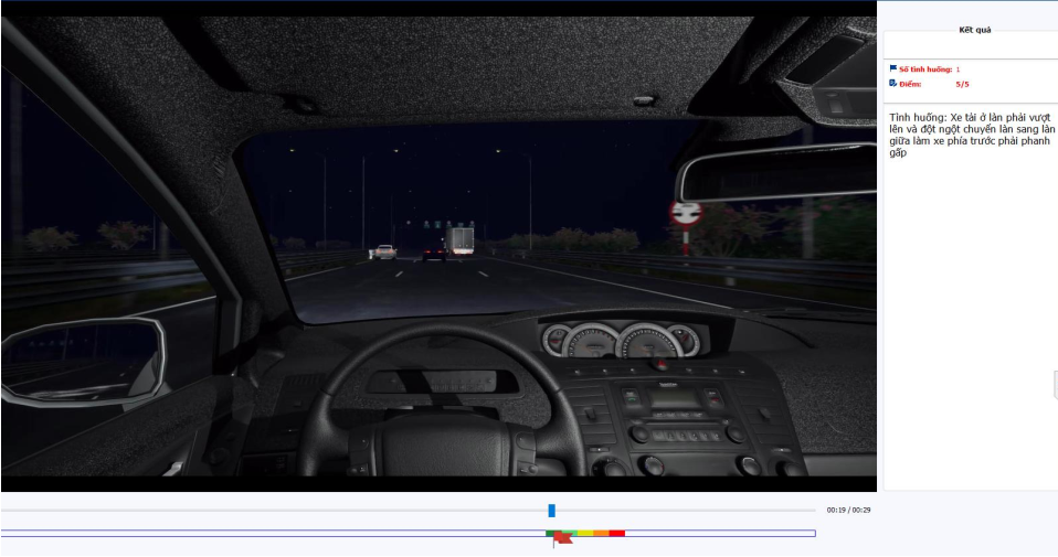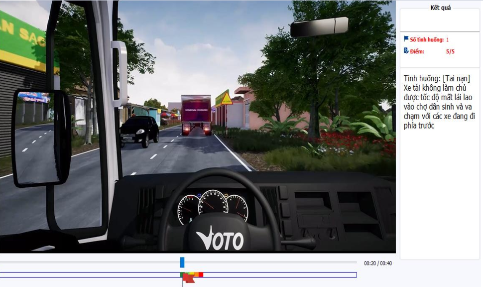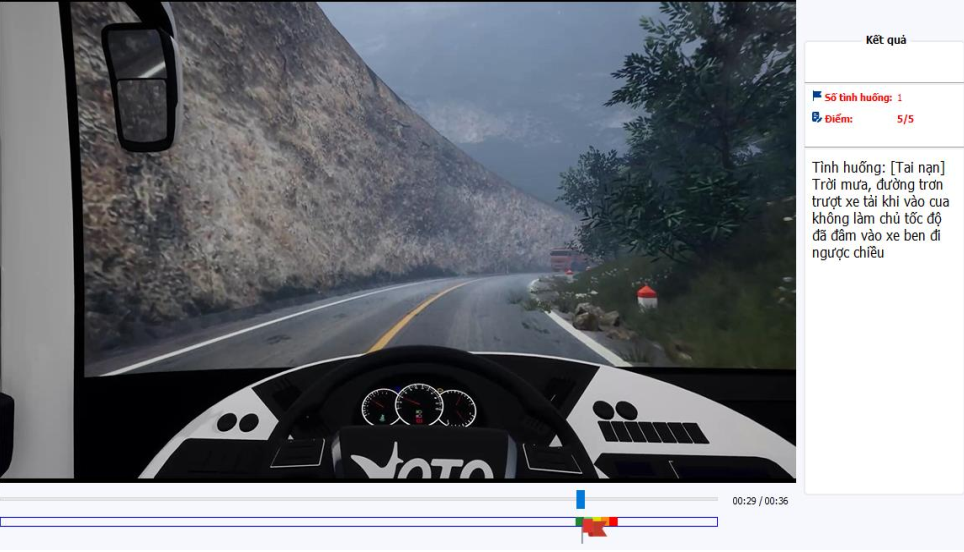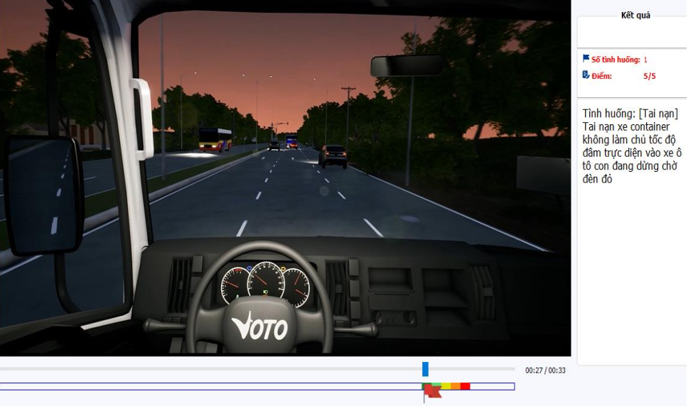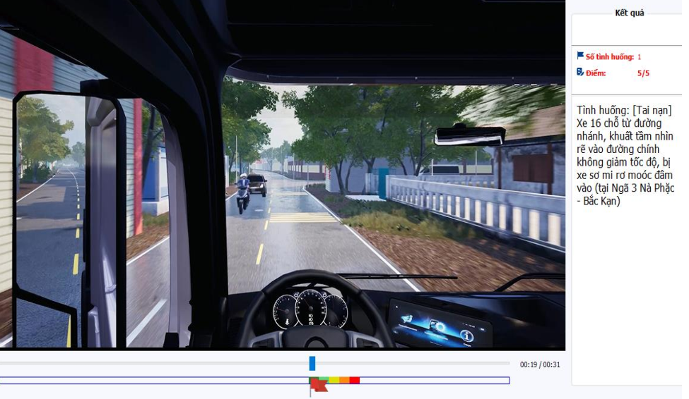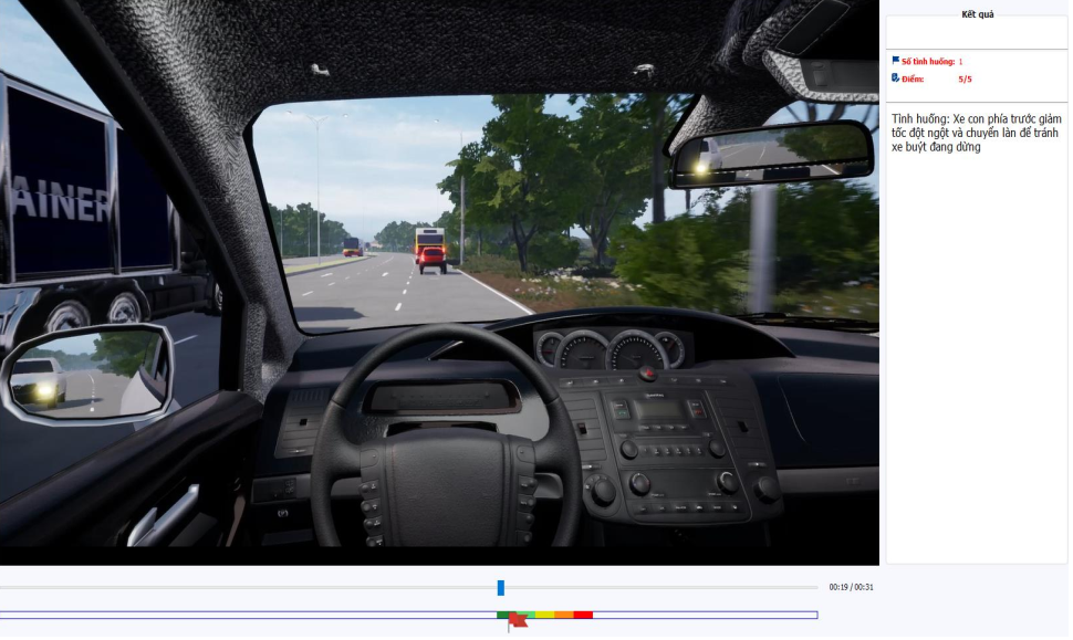 Nhấn phím Space – Khi xuất hiện đầu xe tải sau xe buýt màu đỏ; xe tải lấn làn nháy đèn xin vượt