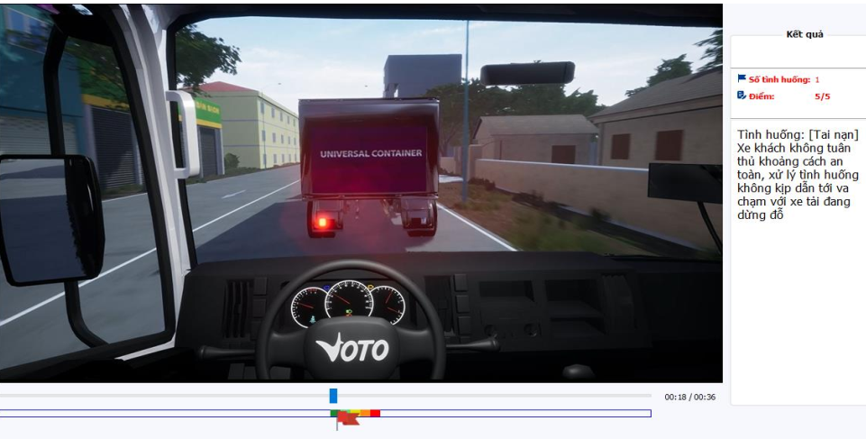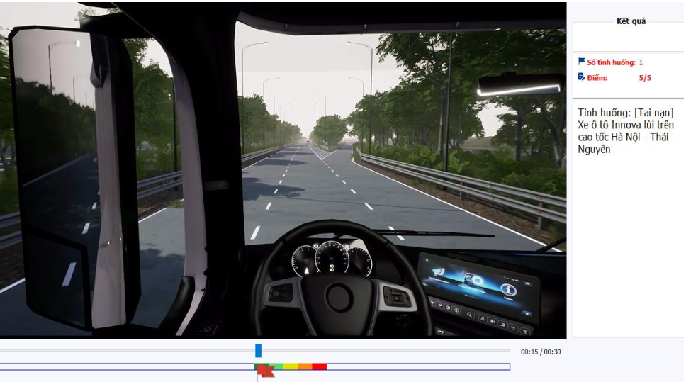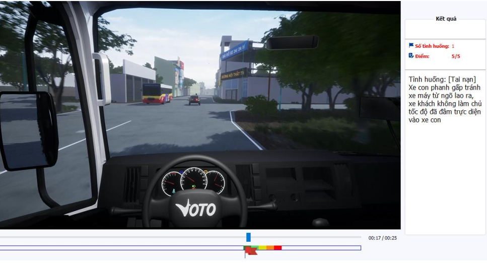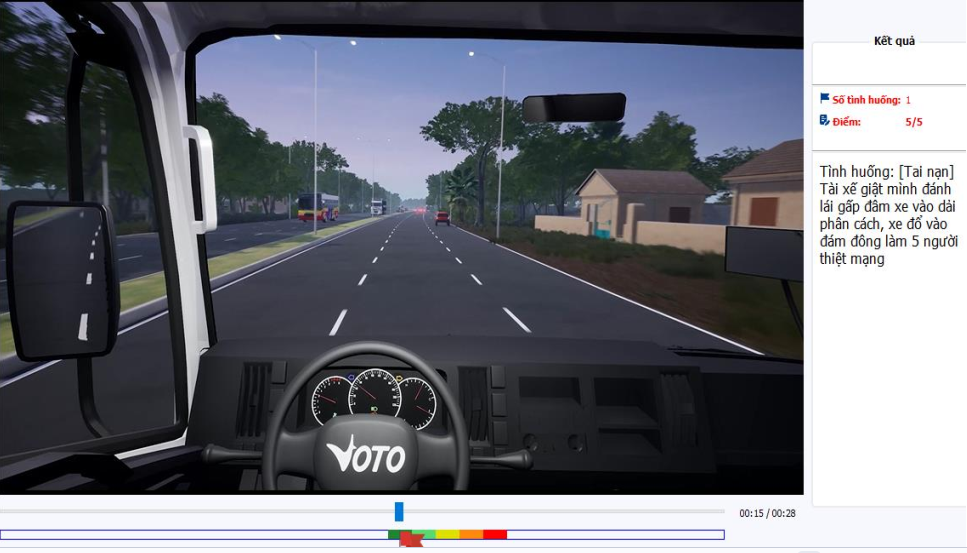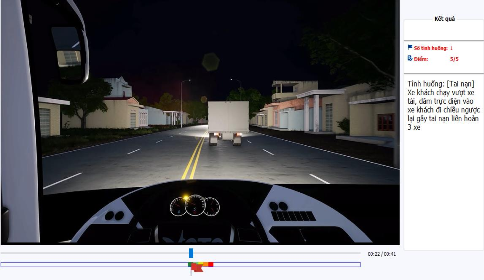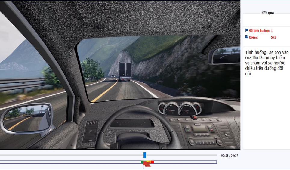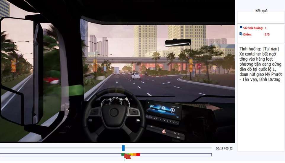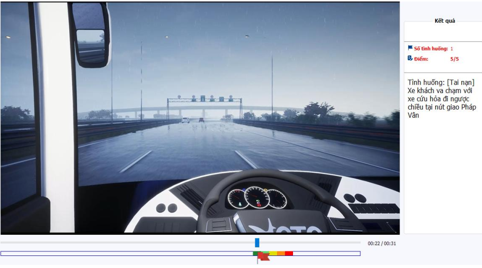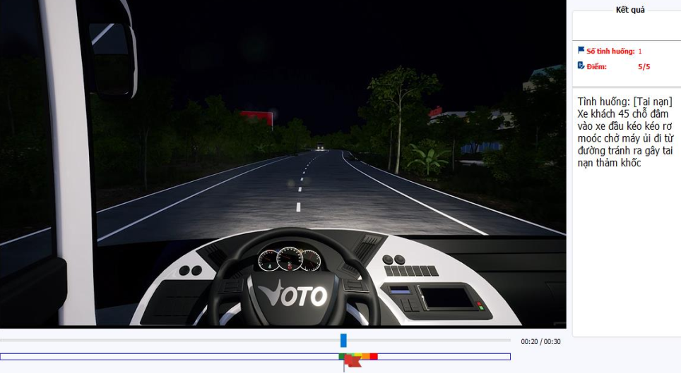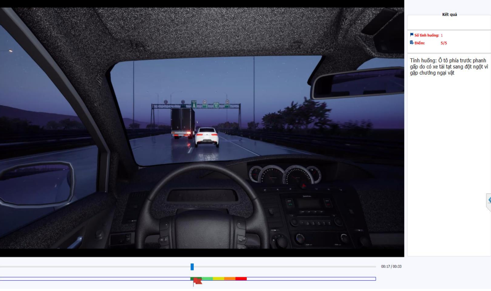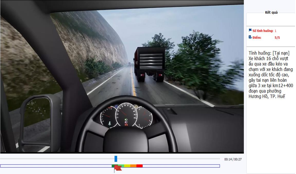 Nhấn phím Space – Khi xuất hiện đầu xe tải sau xe buýt màu đỏ; xe tải lấn làn nháy đèn xin vượt
