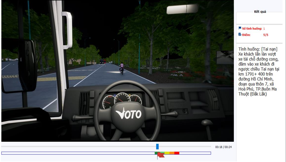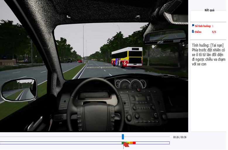 Nhấn phím Space - Xe khách màu đỏ phía đối diện vượt mất an toàn