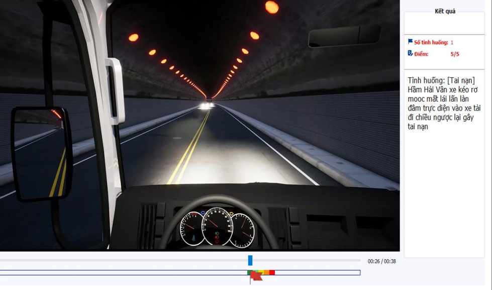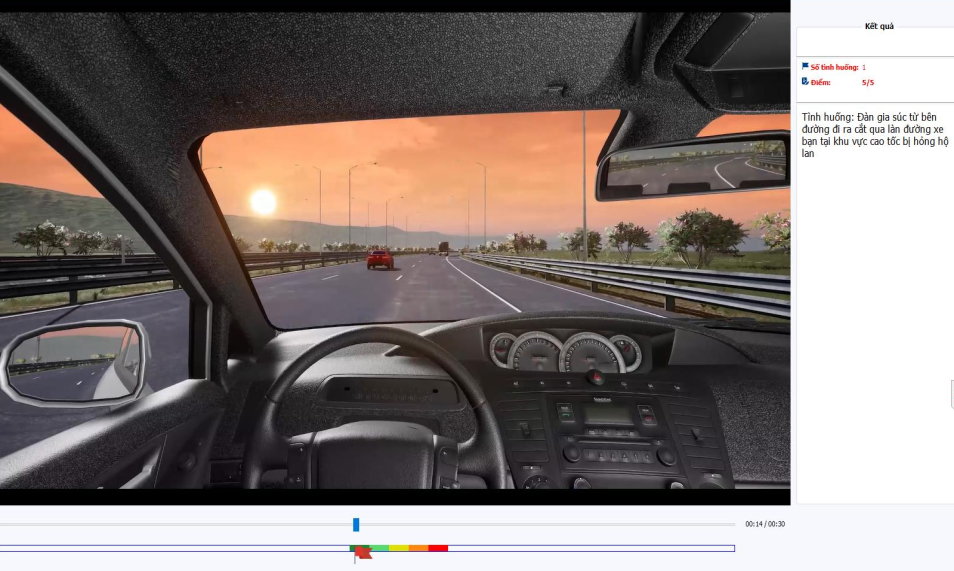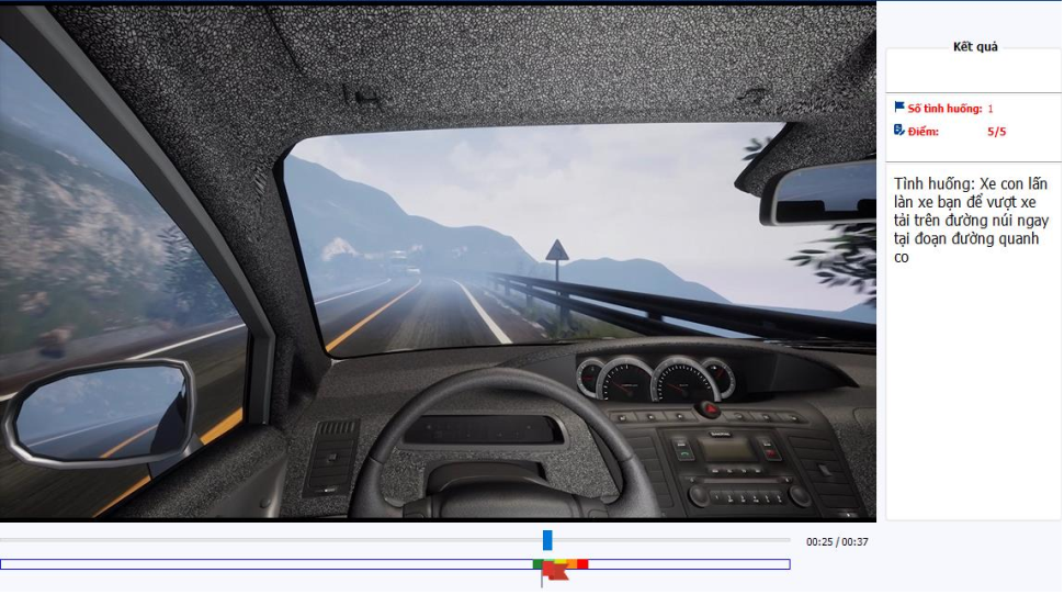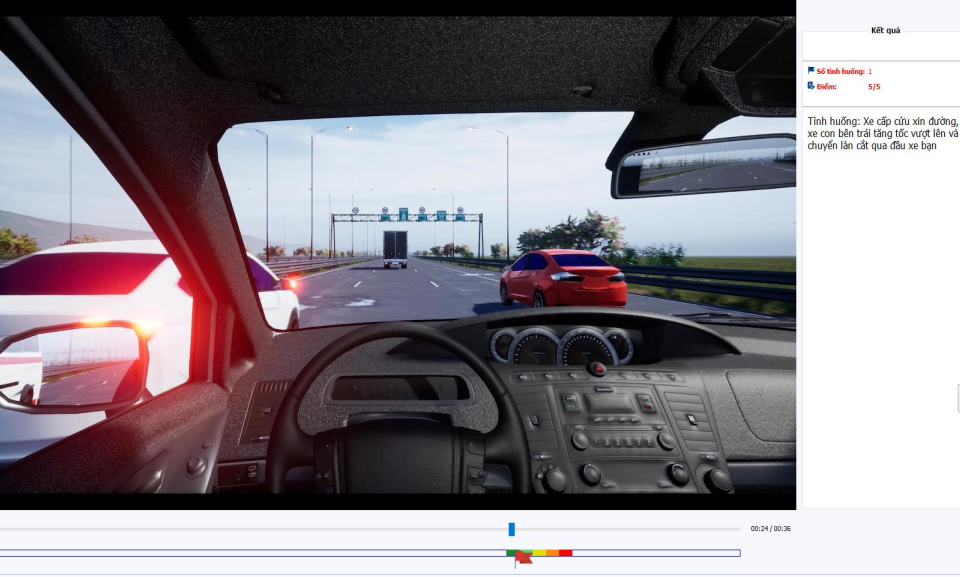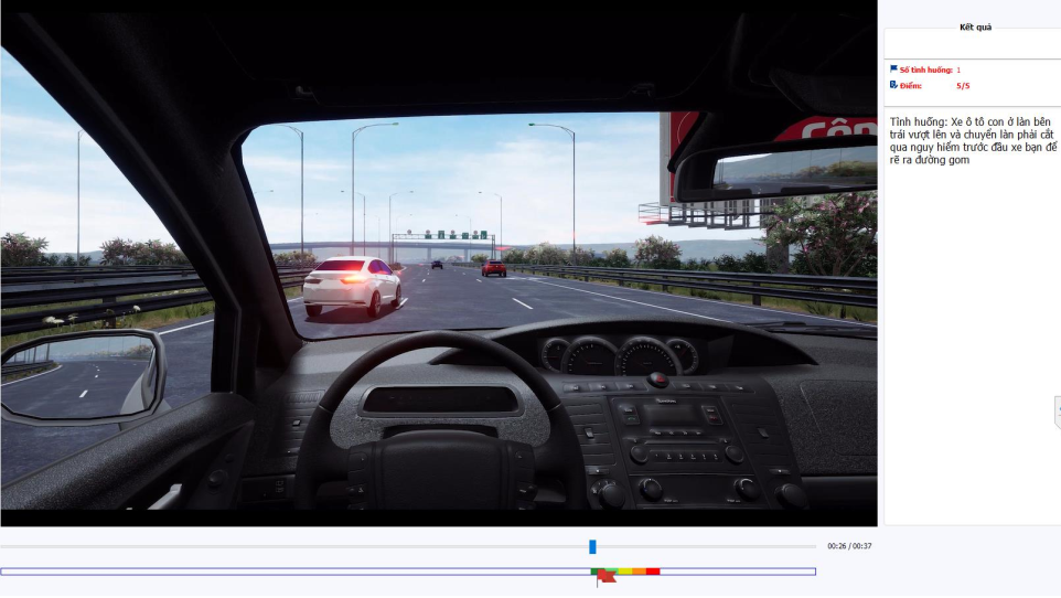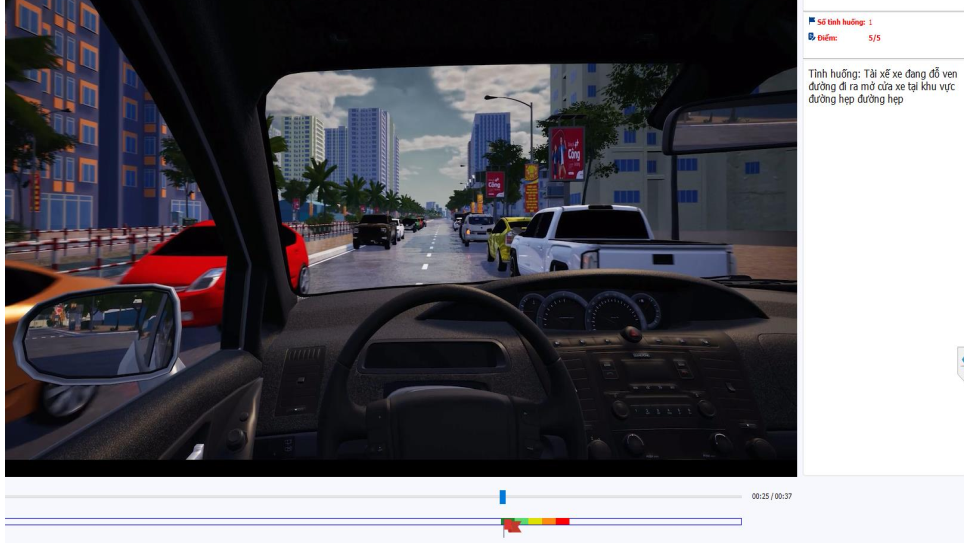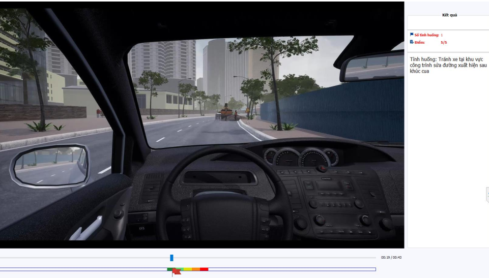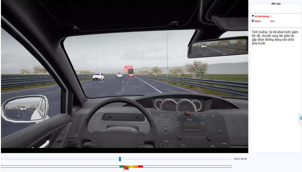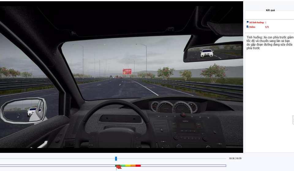 Nhấn phím Space – Khi thấy xe con màu đỏ phía trước chuyển làn tránh công trình, thấy đèn cảnh báo công trình