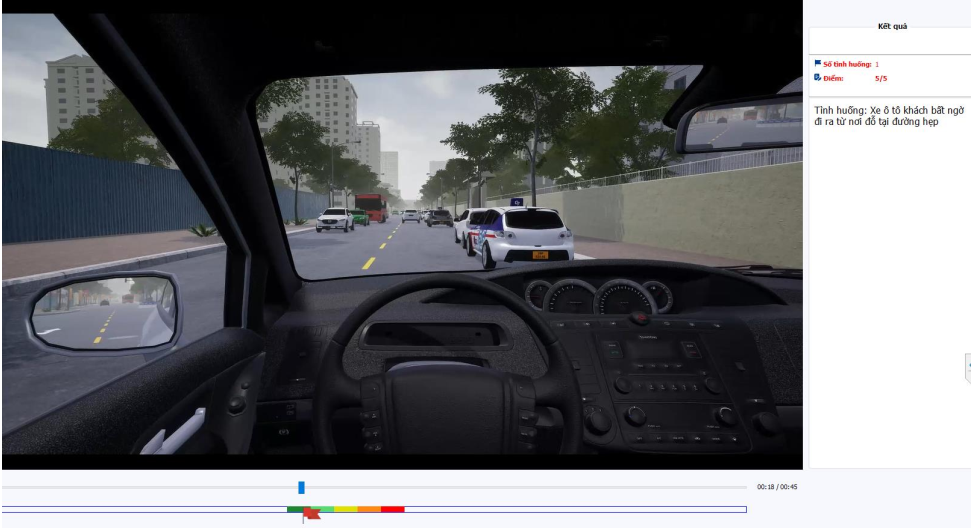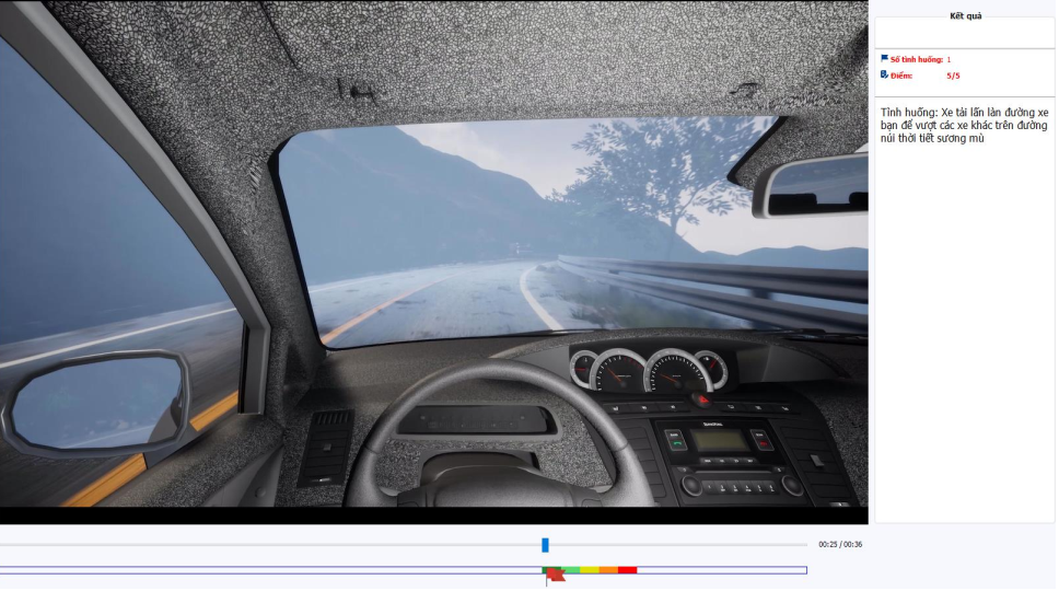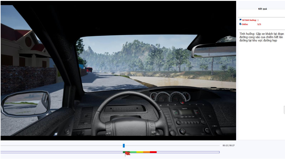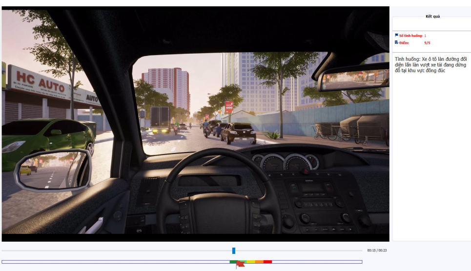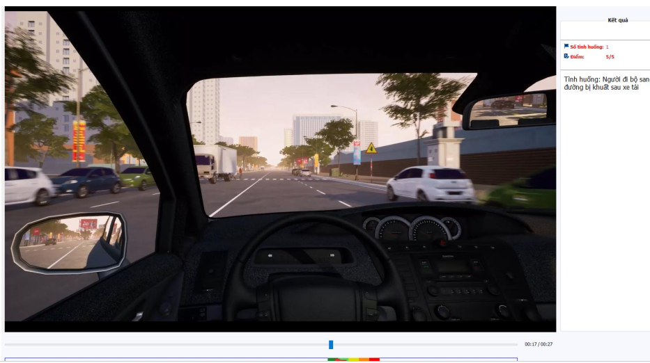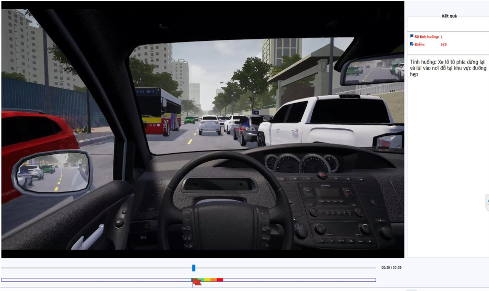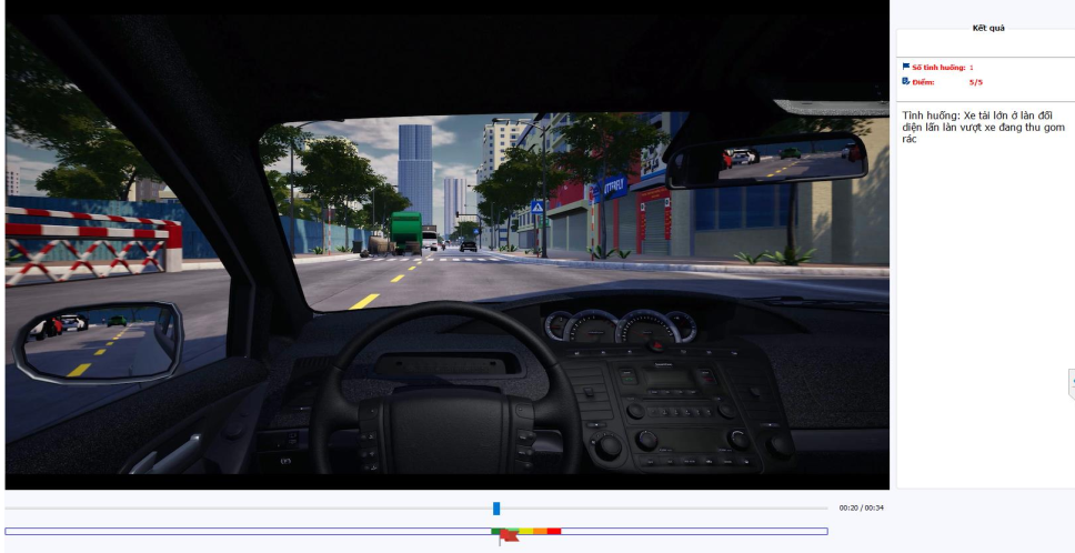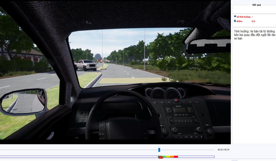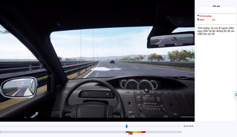 Nhấn phím Space – Khi chân kính cửa trái thấy vạch sơn vàng, nhìn gương hậu xe phía sau đang quá gần xe đang chạy
