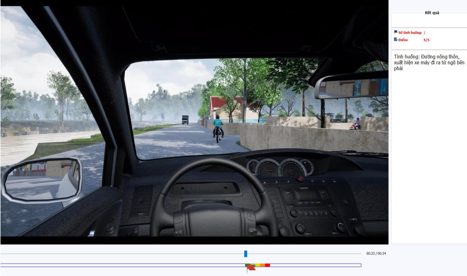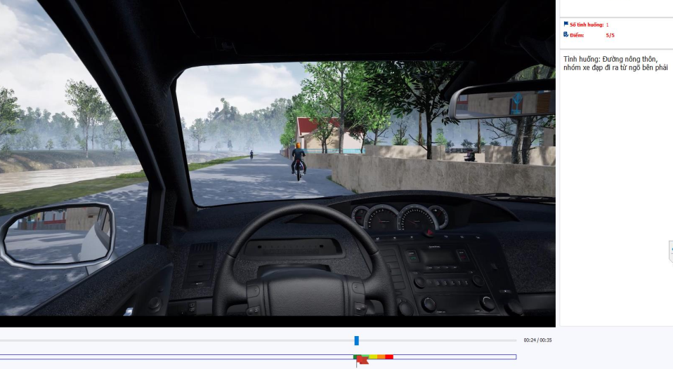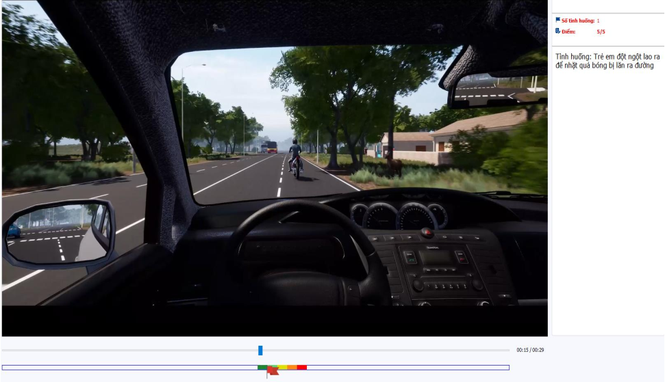 Nhấn phím Space – Khi thấy xe khách màu đỏ lấn đường chuẩn bị vượt xe đạp.
