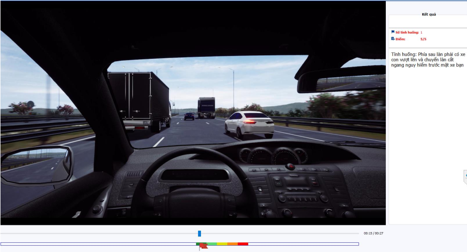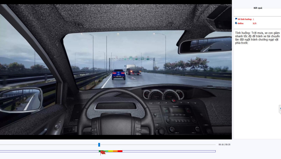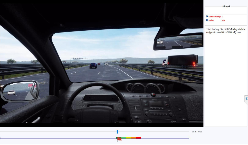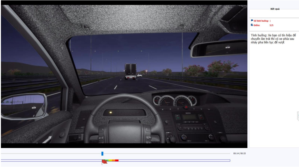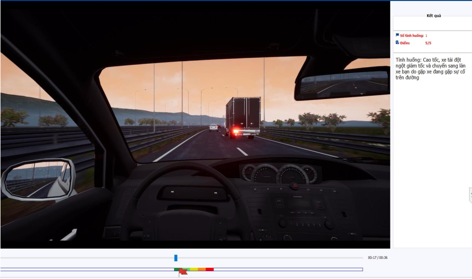 Nhấn phím Space – Khi thấy xe tải xi nhan, bắt đầu chuyển làn vô làn xe đang chạy