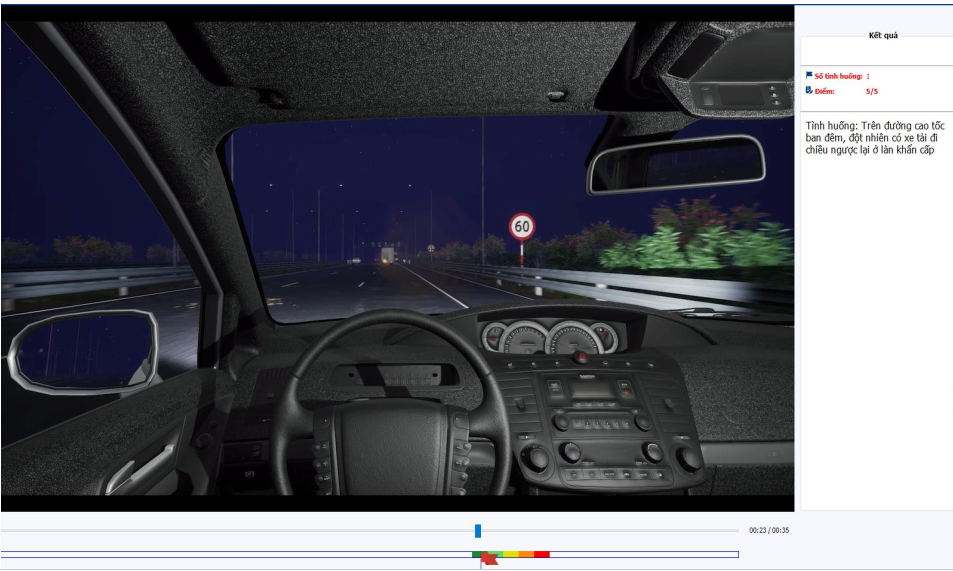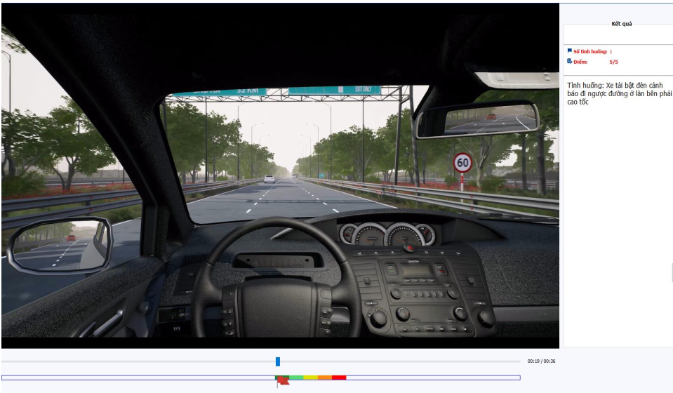 Nhấn phím Space – Khi qua biển giới hạn tốc độ 60 km/h bên phải, phát hiện xe tải chạy ngược chiều