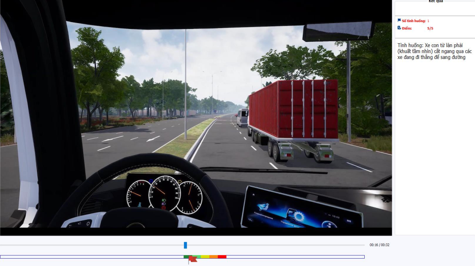 Nhấn phím Space – Khi thấy xe container xi nhan, 1 bánh bên phải đè vạch kẻ đường